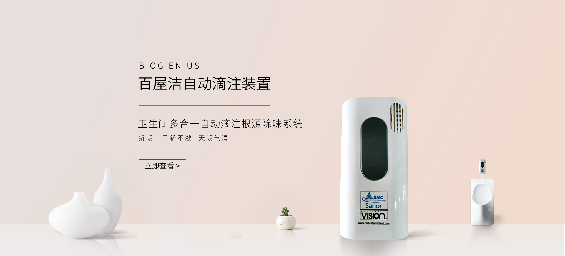 新朗環(huán)境自2015年起與美國(guó)具百年歷史的跨國(guó)企業(yè)RMC(Rochester Midland Corporation)合作, 進(jìn)口 RMC用于機(jī)械制造、交通運(yùn)輸、航天航空、石油化工、食品禽肉乳制品加工等工業(yè)生產(chǎn)制造行業(yè)的專業(yè)清洗、滅菌系列產(chǎn)品,以及酒店、CBD大廈、學(xué)校(包括幼稚園)、醫(yī)療機(jī)構(gòu)、百貨商場(chǎng)、養(yǎng)殖業(yè)、餐飲業(yè)等商用行業(yè)清潔、消毒系列產(chǎn)品,還有專用于各個(gè)行業(yè)單位“廁所革命”的公共衛(wèi)生間根源除味第5代SANOR?衛(wèi)生間自動(dòng)滴管系統(tǒng)、第6代百屋潔SIOGIENIUS?電子控制衛(wèi)生間自動(dòng)滴注系統(tǒng)等系列產(chǎn)品項(xiàng)目。